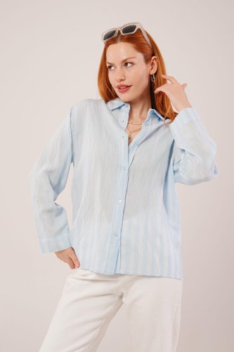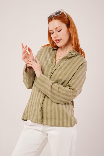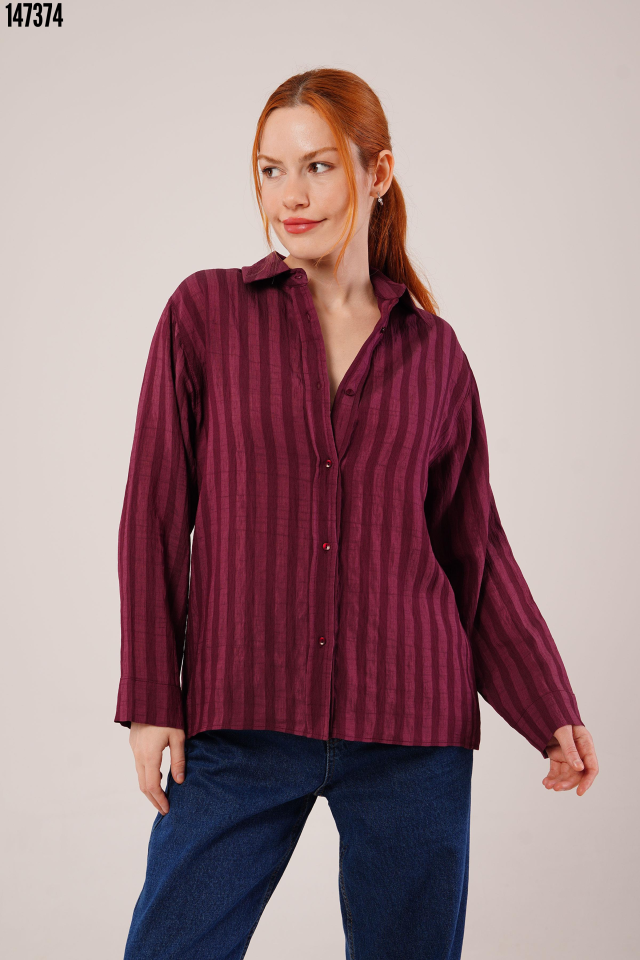 Düğmeli Ve Çizgi Detaylı Bordo Gömlek